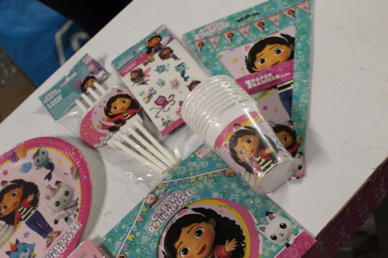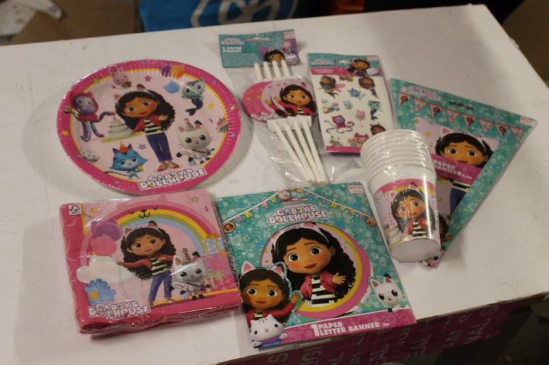 Feestset Gaby's Dollhouse, 8 borden, 8 bekerrs, 4 rietjes, 20 servetjes, 1 letterbanner, 1 stickervel, 1 vlaggenlijn