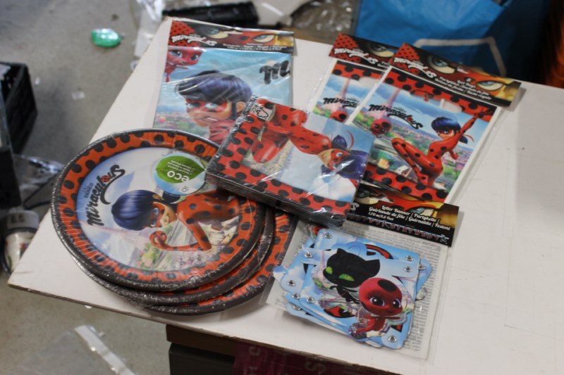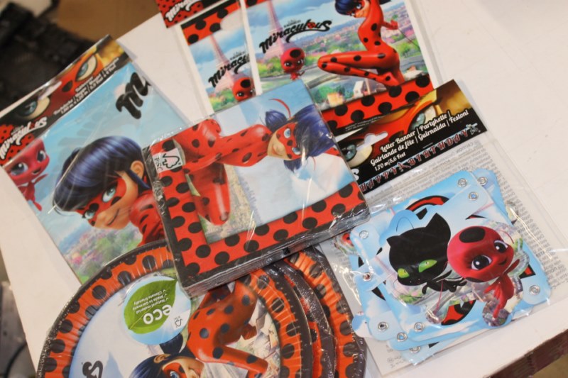 Feestset Miraculous, 16 uitdeelzakjes, 20 servetten, 1 slinger, 24 bordjes, 1 tafelkleed