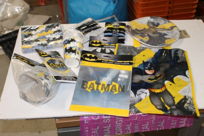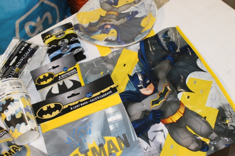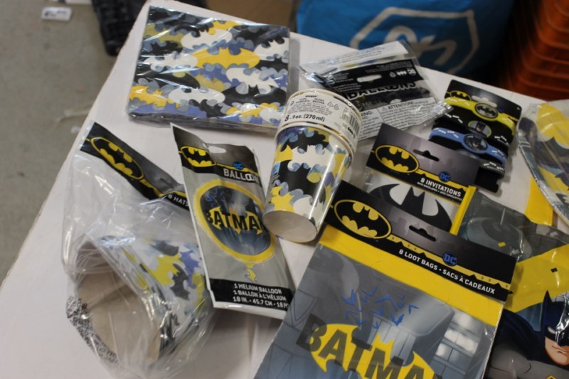 Feestset Batman, 1 tas, 4 armbanden, 8 ballonnen, 20 servetten, 8 uitnodigingen, 8 feesthoedjes, 1 ballon, 8 uitdeelzakjes