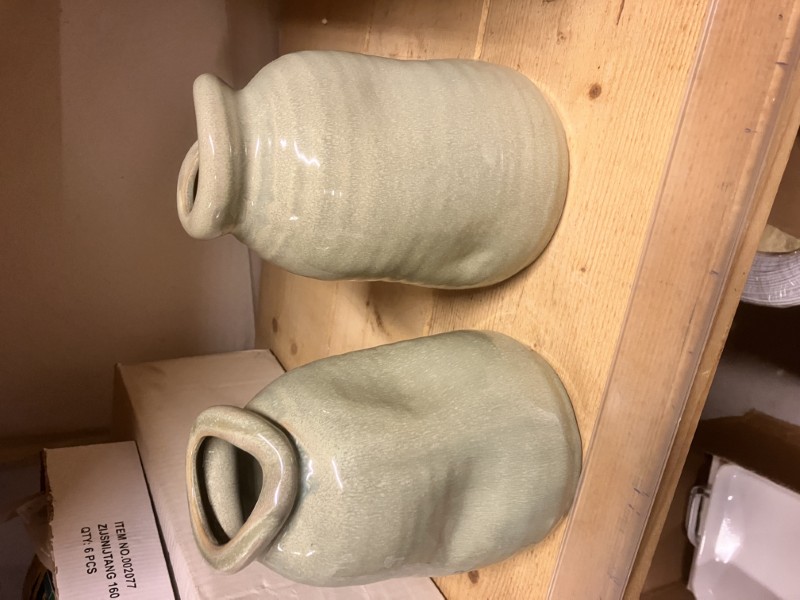 groene aardewerk bloemenvaas 18cm hoog 11cm breed,