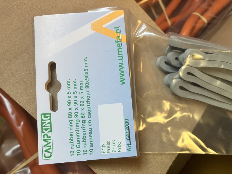9 x zak met elk 10 rubberen ringen campking 80 x 90 x 5 mm,