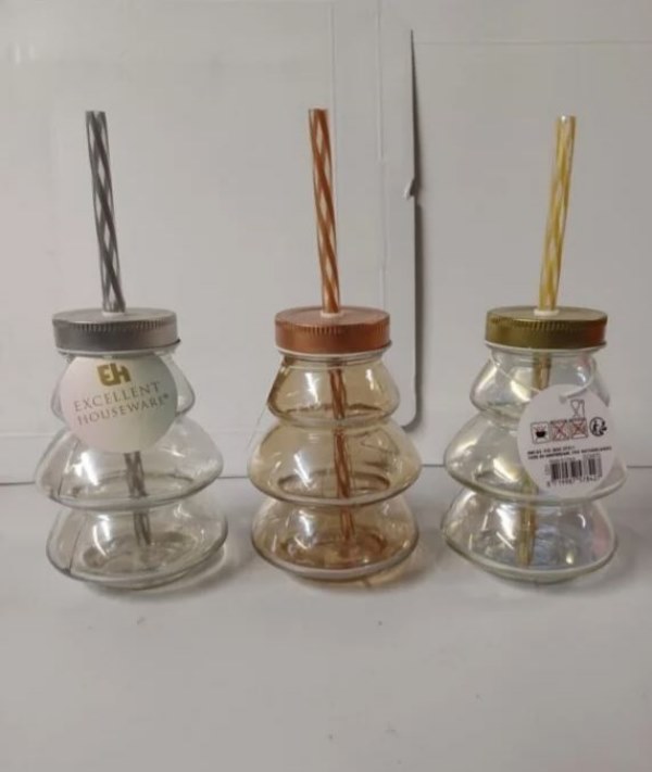 Glazen bol flesje met rietje mix, VERZENDEN OP EIGEN RISICO