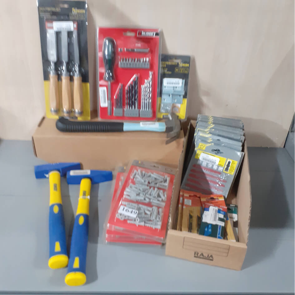 Div. gereedschap o.a. decoupeerzaagjes, hamers, houtbeitels