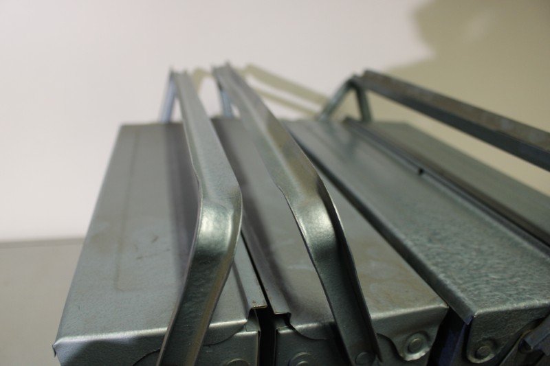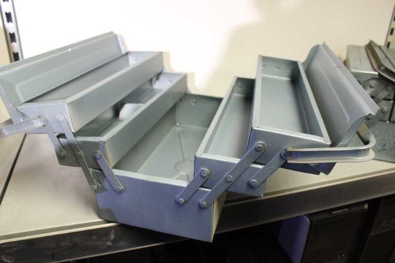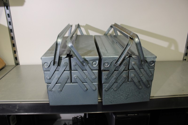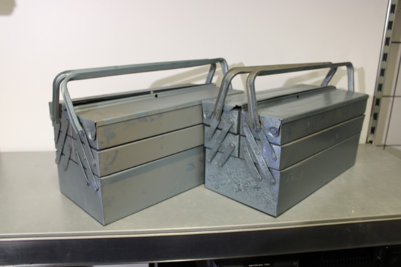 2x Stalen gereedschapskist grijs, met transportschade, hbd 21x20x42cm