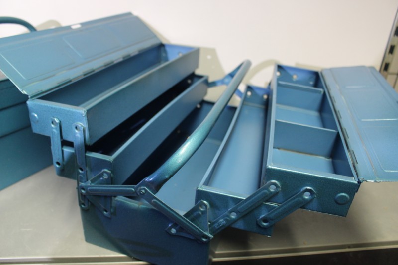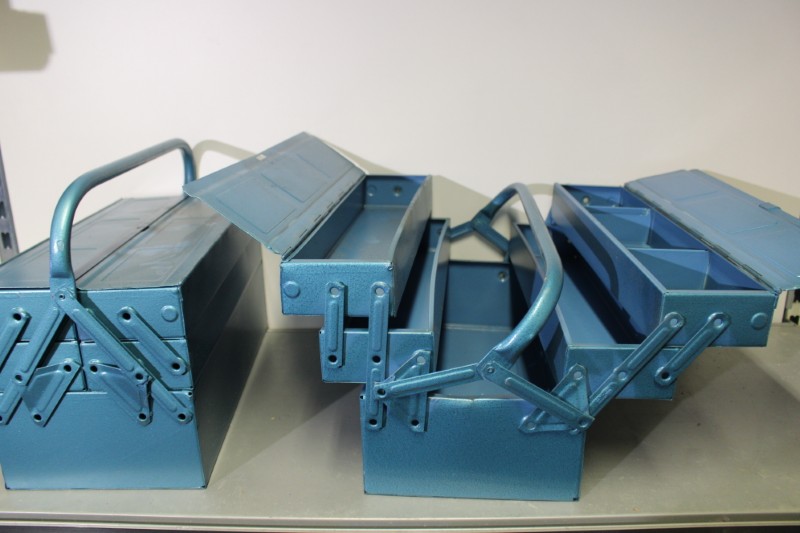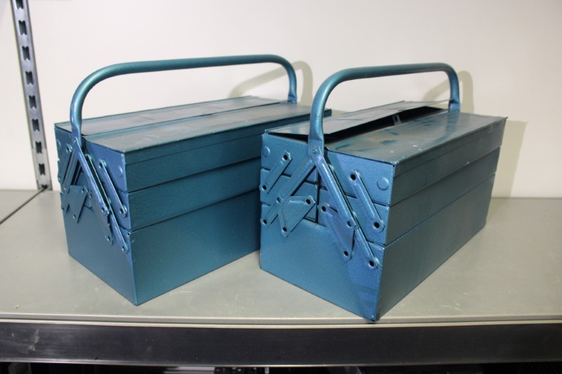 2x Stalen gereedschapskist blauw, met transportschade, hbd 21x20x42cm