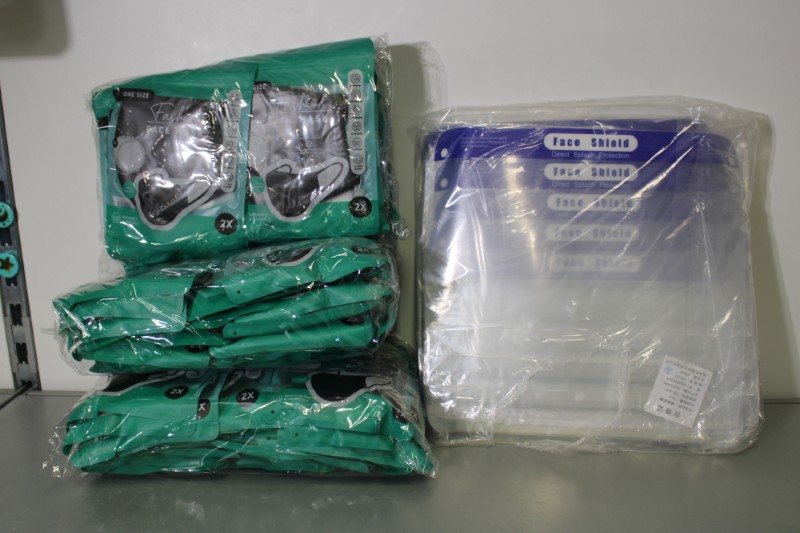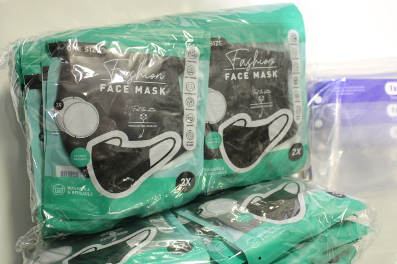 Partij wasbare mondmaskers en spatschermen