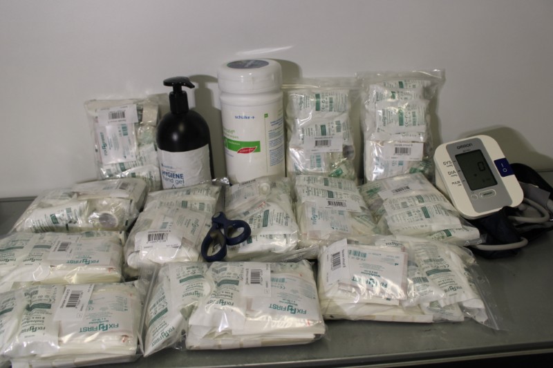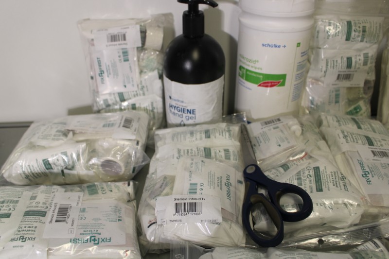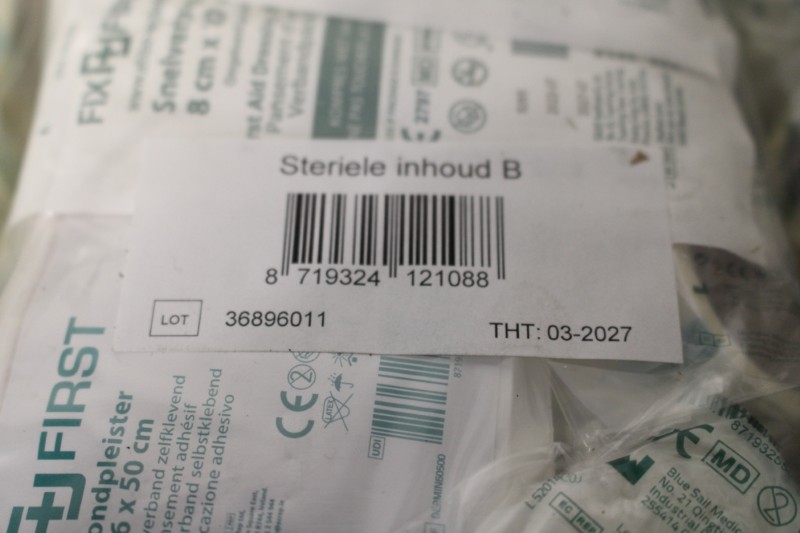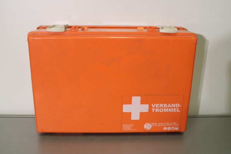 Partij EHBO materiaal, incl lege EHBO koffer (gebruikt)