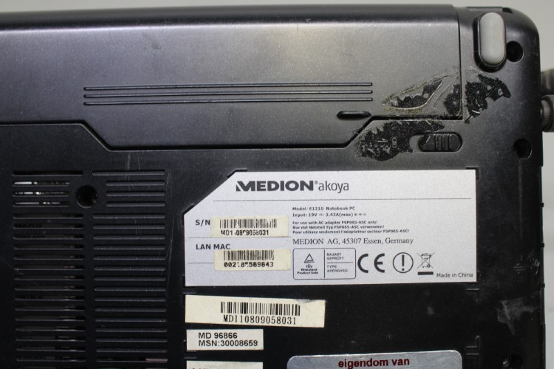 Medion Akoya Notebook, incl adapter, met onbekend wachtwoord