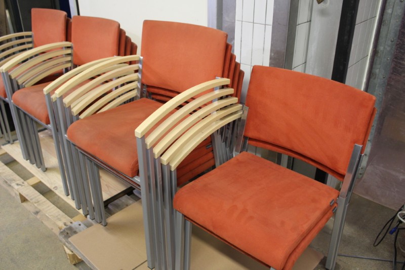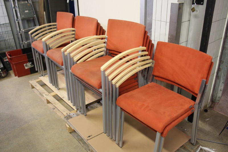 14x oranje vergaderstoel, waarvan 2 zonder leuning