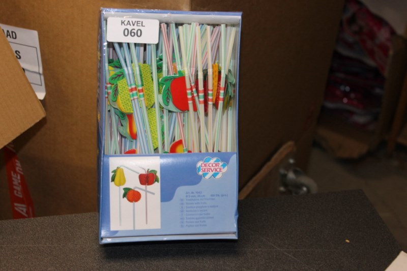100 rietjes met froezel eraan in krat,