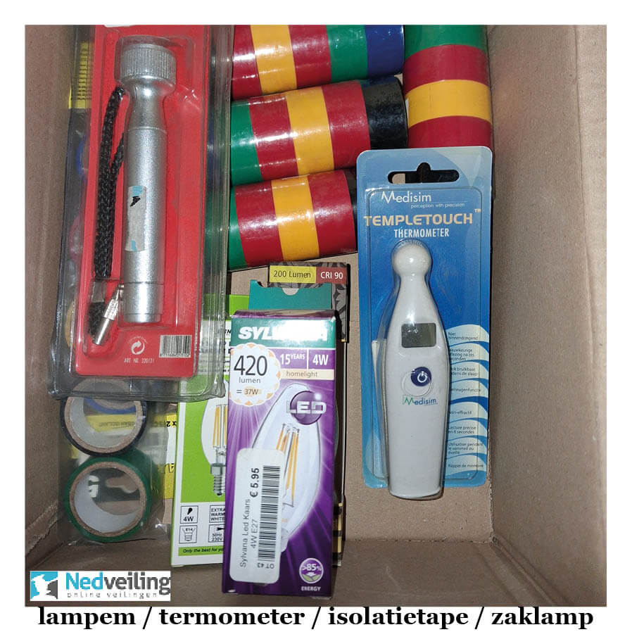 Doos van alles wat, isolatie tpe / thermometer, zaklamp etc