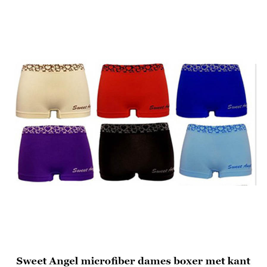 6 ex. Sweet Angel sames boxer met kant mix color maat One Size (doos O)