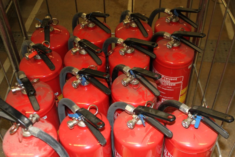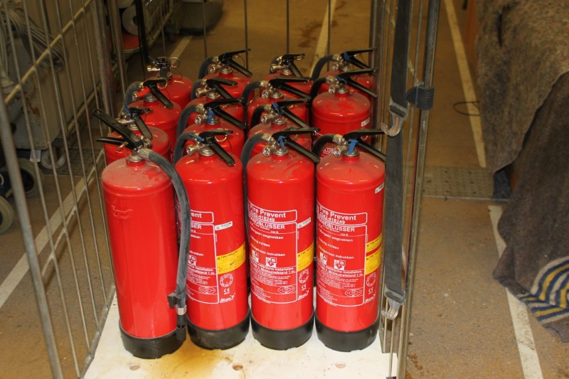 Partij brandblussers, c.a. 15 stuks, word verkocht exclusief kar.