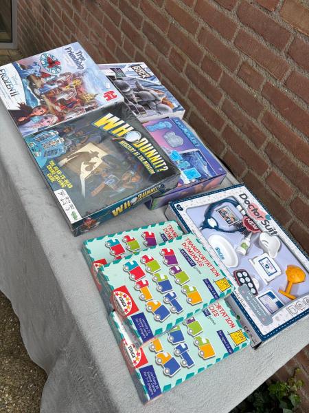 Deze gevarieerde partij biedt speelplezier voor alle leeftijden, met populaire bordspellen zoals Frozen II, Fraggle Rock en het spannende detectivespel Whodunnit. Daarnaast bevat de set drie nieuwe pakjes 'Transportation Dominoes' en een complete 'Doctor Suit' rollenspelset voor de kleintjes. De meeste items zitten nog in de originele fabrieksfolie of ongebruikte verpakking, al kunnen de dozen lichte sporen van opslag vertonen. Een ideale kans voor wie op zoek is naar kwalitatief speelgoed voor de handel of als cadeauvoorraad!Breng een bieding uit