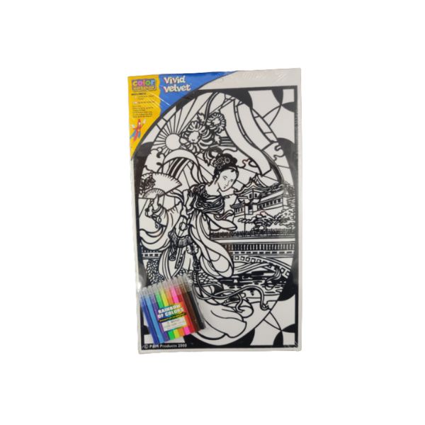 3 x Color Workshop flock inkleurschilderij Japanse dame, Maak je eigen schilderij: Color Workshop Vivid Velvet Japanse dame. Stevige kartonnen plaat met flock lijnbedrukking. Inclusief 10 uitwasbare viltstiften. Makkelijk binnen de lijnen te kleuren dankzij flock. Afmetingen: 255 x 426 mm (b x h).Breng een bieding uit