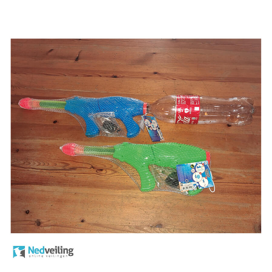 2 ex. Groot waterpistool 39 cm met pet fles als reservoir (doos Q)Breng een bieding uit