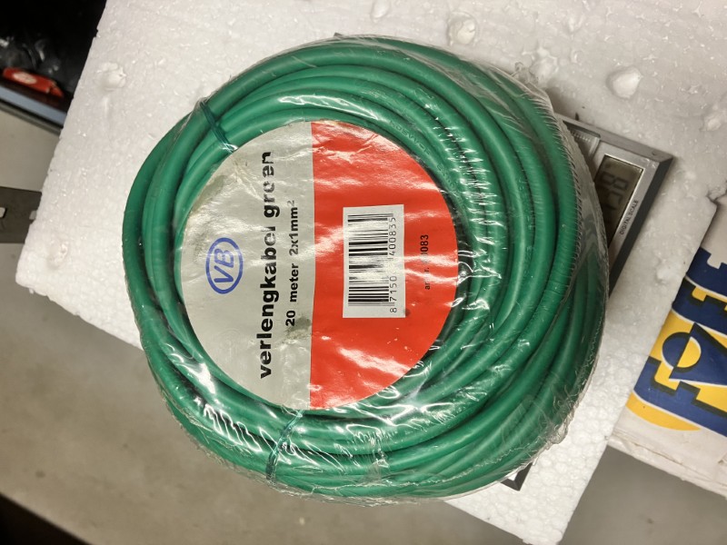 2 x Verlengkabel groen 20mtr. , 2 x 1mm 2