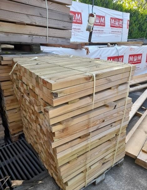 357 Stuks Regels geïmpregneerd grenen 45x68x750mm , 4 zijde geschaafd daarna drukgeïmpregneerd