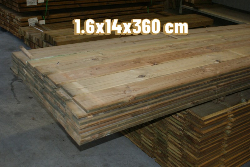 40x Plank, geïmpregneerd grenen, 1,6x14x360cm met vier afgeronde hoeken
