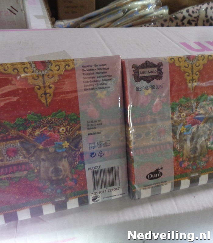48x pakje Duni Kerstservetten Rudolf , 33x33cm 3 laags 20 st per pakje