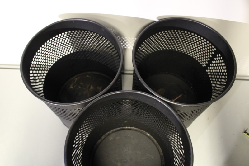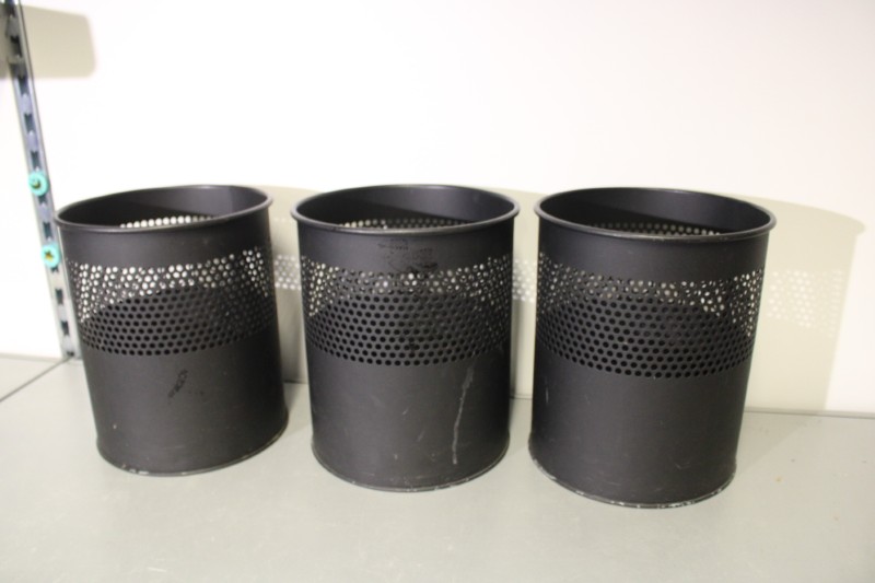 4x Stalen prullenbak, hoogte 27cm, diameter 23cm. Kavel bevat 4 stuks (slechts 3 op foto te zien).