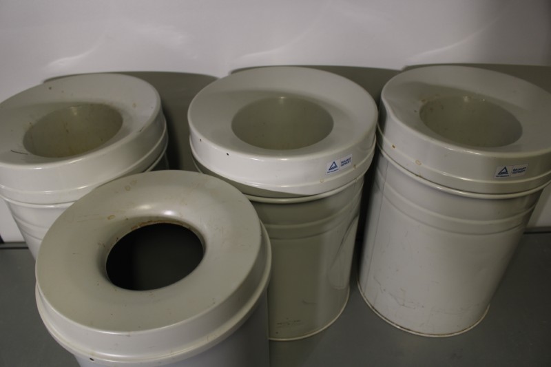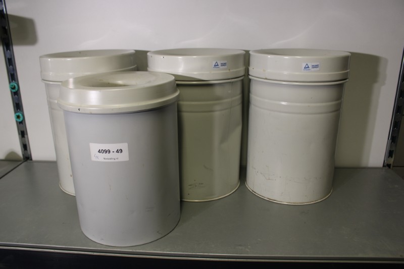 4x vlamdovende prullenbak, diameter 35cm, hoogtes 34 en 38c,