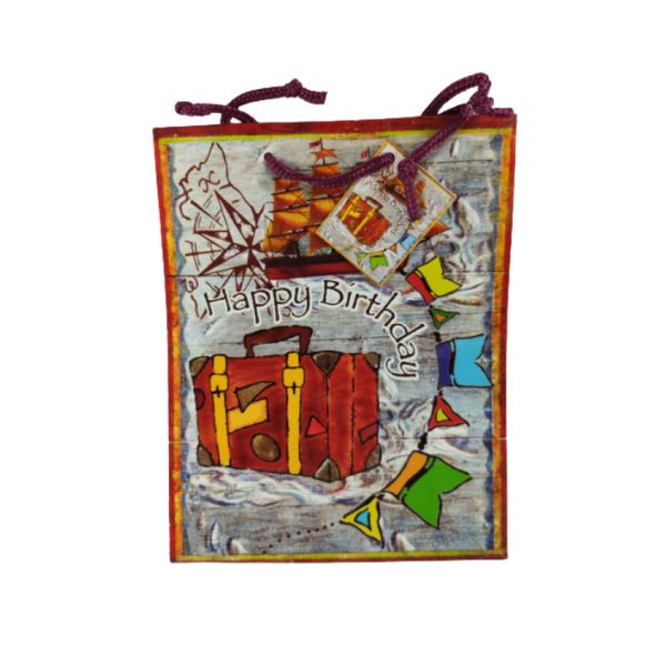 60 x Kadotasje “Happy Birthday”, Kadotasje “Happy Birthday” papier; buitenkant geplastificeerd Aan het koord is een klein kaartje bevestigd met dezelfde afbeelding. Afmeting: 18 x 22,5cm. Leverbaar in 4 kleuren, wordt in assorti geleverdBreng een bieding uit