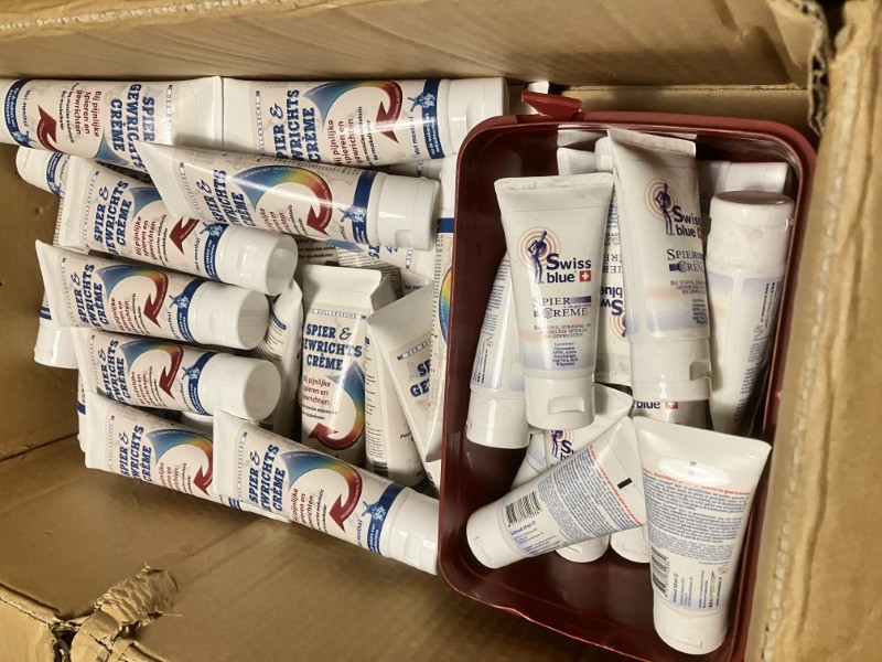 9 x tube spiercrem a 75 ml. febr 2026 en 17 testtubes van 30 ml, Totaal dus 26 stuks,