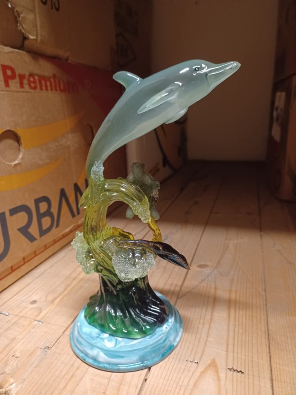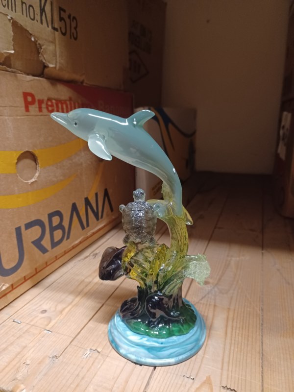 Beeld dolfijn met schildpad ny81950 23 cm hoog aantal 1 stuks.