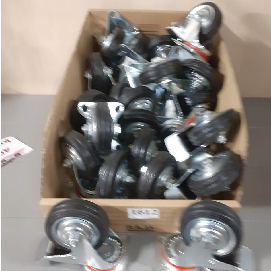 Doos bokwielen 75mm zwenk ook met rem en vast
