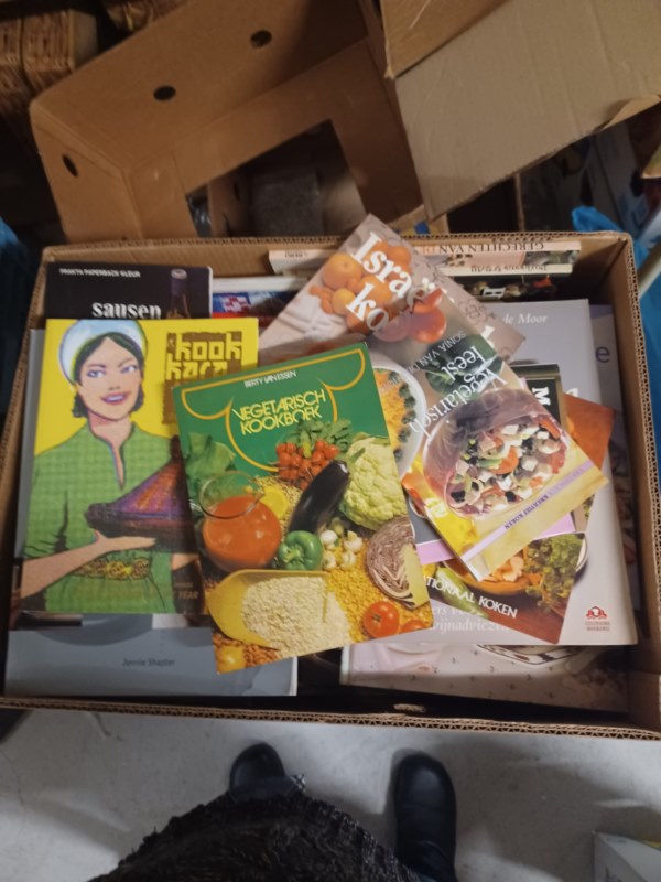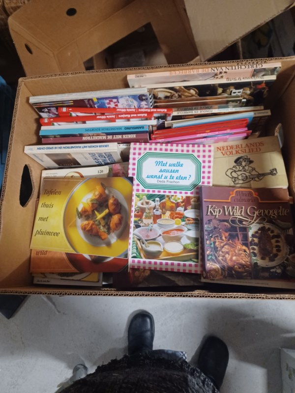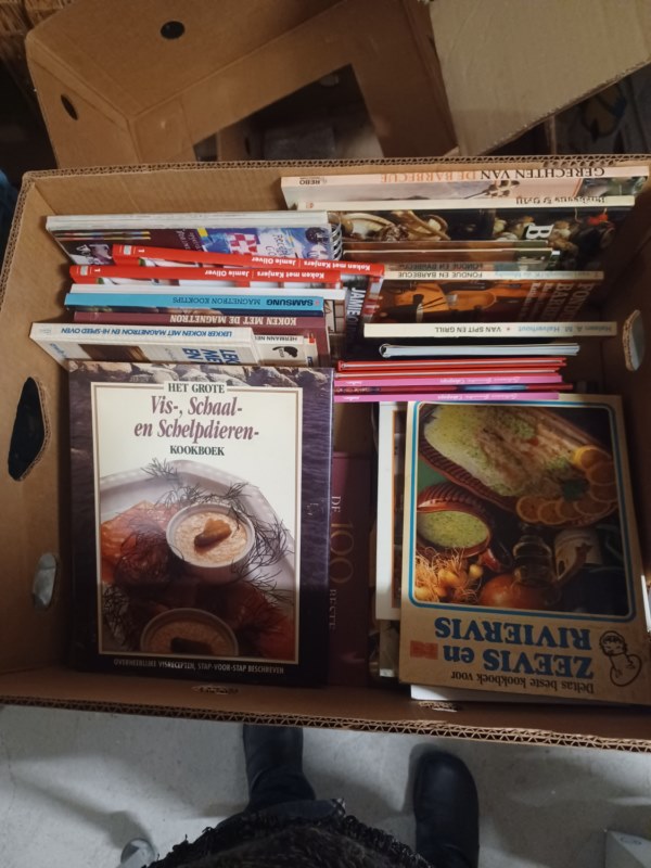 Doos met diversen kookboeken uit inboedel aantal 79 stuks.