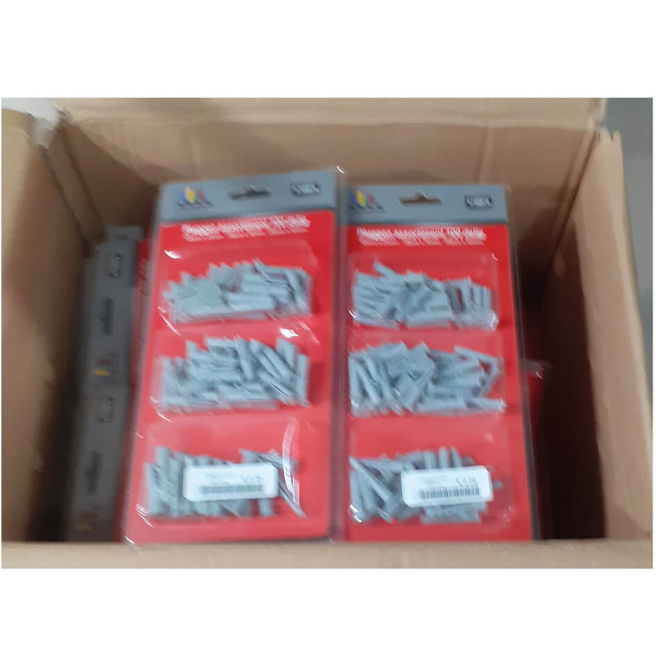 doos vol pakken met 100 pluggen div. maten