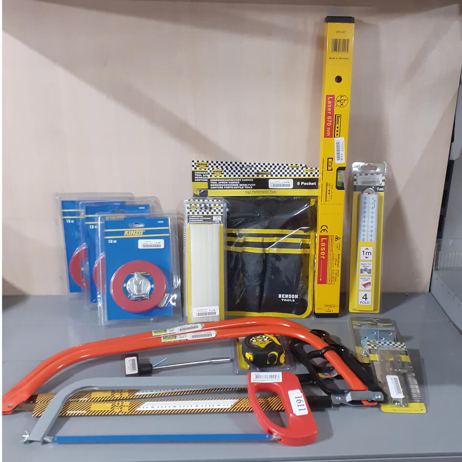 Gereedschapschorten, beugelzagen, rolmaten 10M, etc.