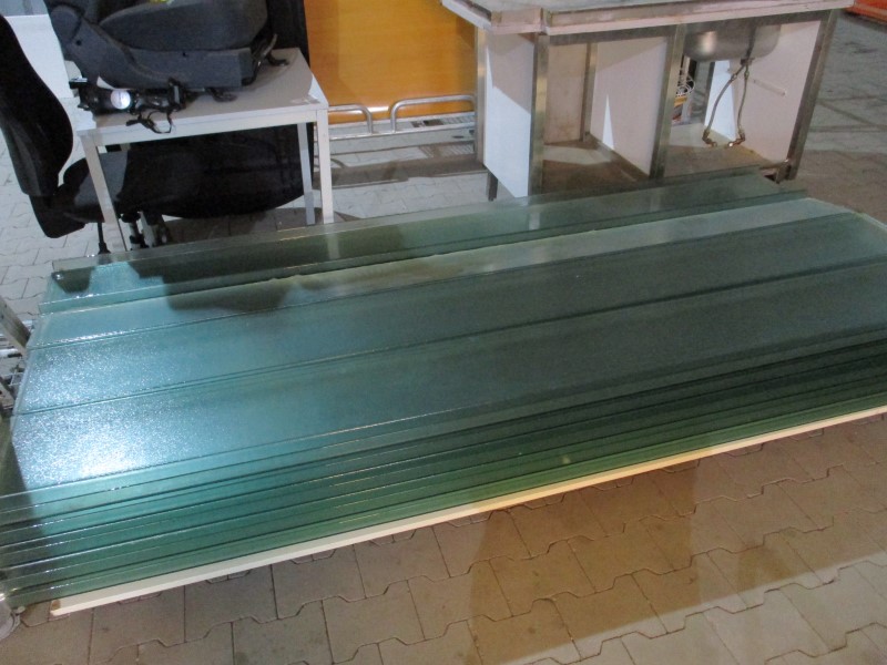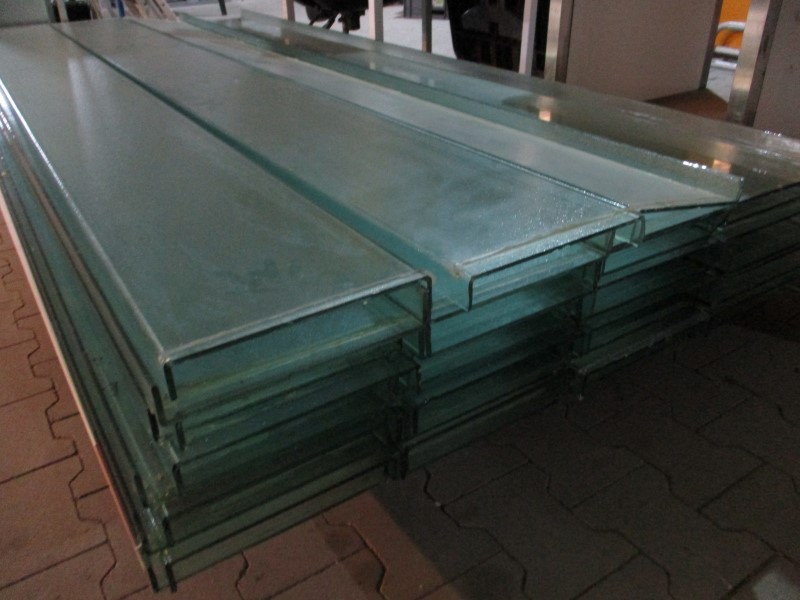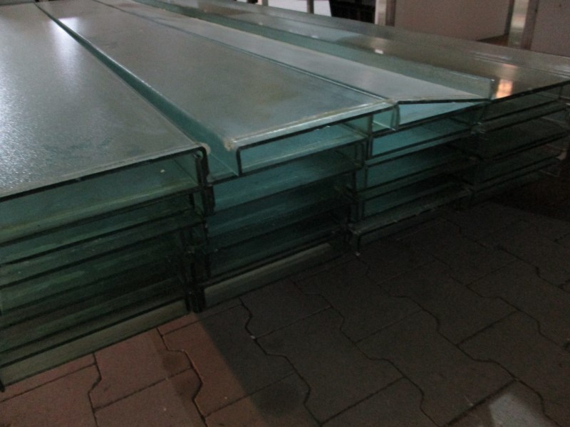 Glazen scheidingswand panelen 247x26x4 cm LxBxD ca 28 stuks is ca 7 meter wand