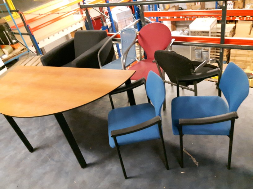Half ronde tafel met 6 verschillende stoelen,