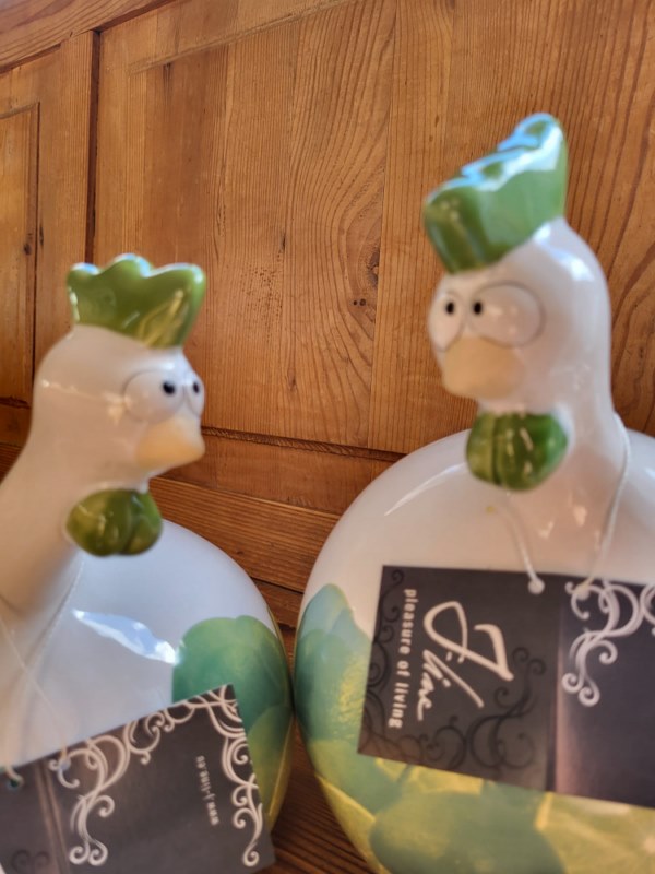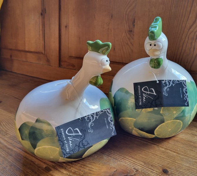 J-line Kip en Haan spaarpot keramiek groen/wit geel 2 stuks aantal 4 sets.