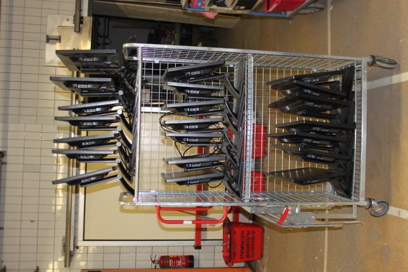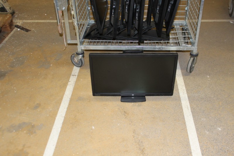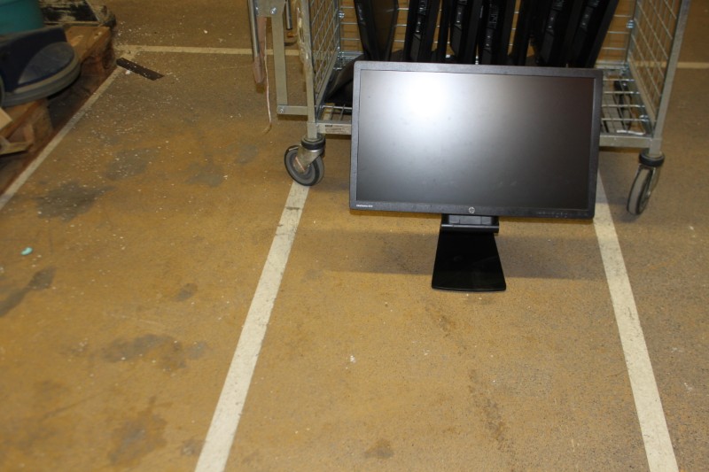 Partij ergonomisch verstelbare monitoren, +/- 20 stuks, Gebruikt, Exclusief kar.