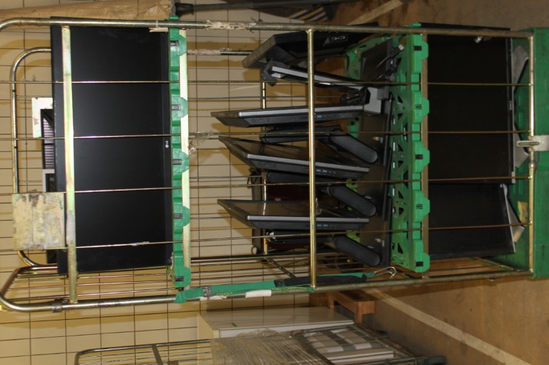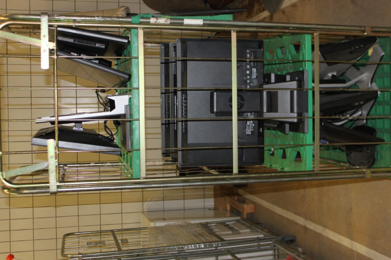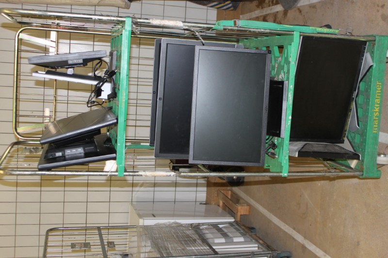 Partij monitors, c.a. 10 stuks, verkoop exclusief kar.