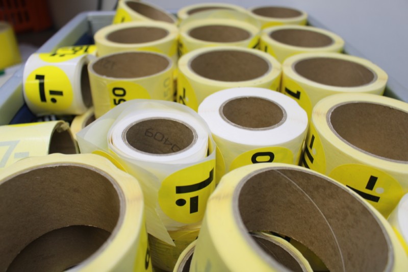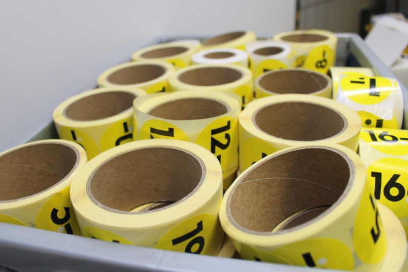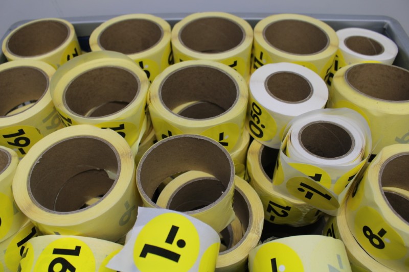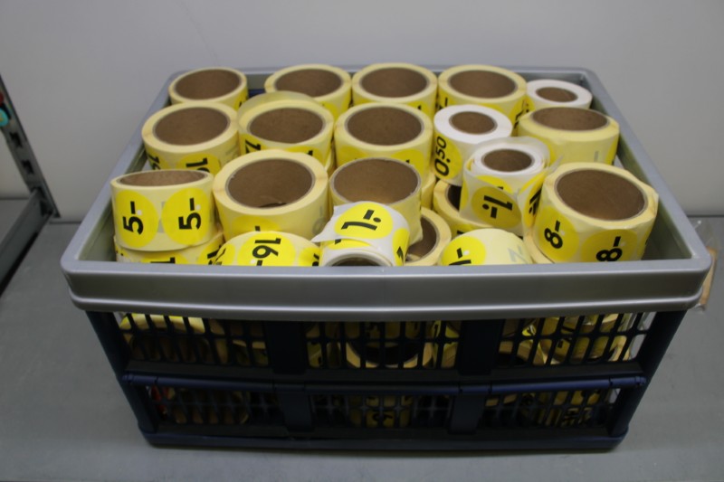 Partij prijs-stickers, incl krat