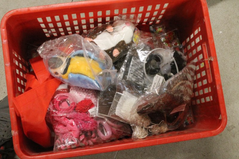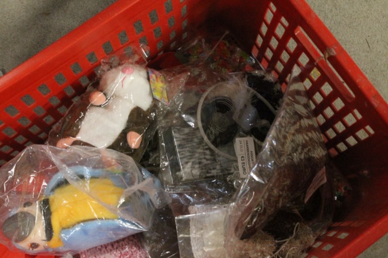 Rode krat met inhoud , inhud is nieuw krat is gebruikt