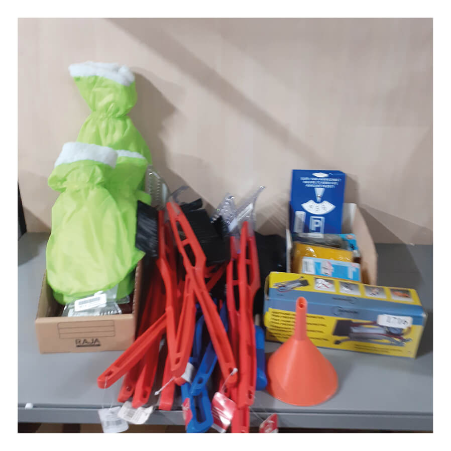 Ruitenkrabbers met handschoen en op steel + divers