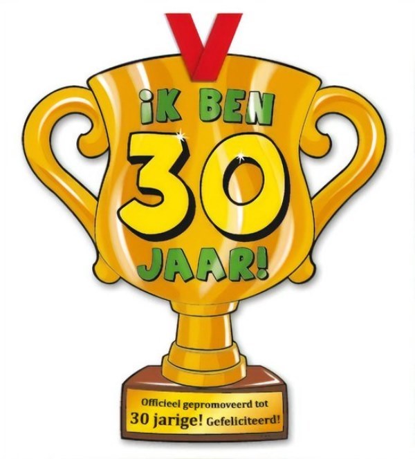 Trofee met lint en tekst ik ben 30 jaar 150 x
