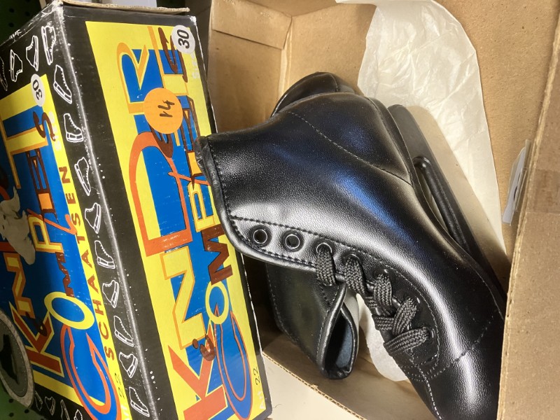 zwarte kinderschaatsen maat 30 in vierkante doos,